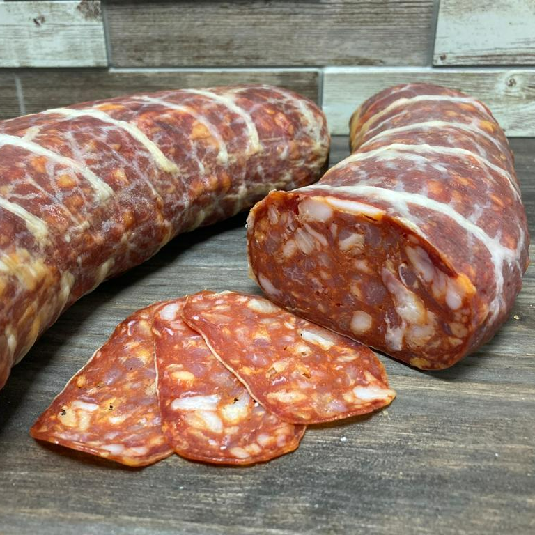 Салями Спьяната Колабро (пиканте). Умеренно острый вкус, идеальный аналог Италии.
