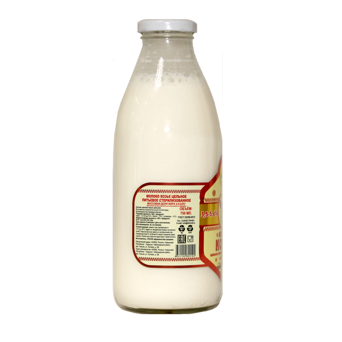 Молоко козье Фермерское отборное стерилизованное мдж 3,5-5,5% премиум класса Стеклянная тара 750 мл