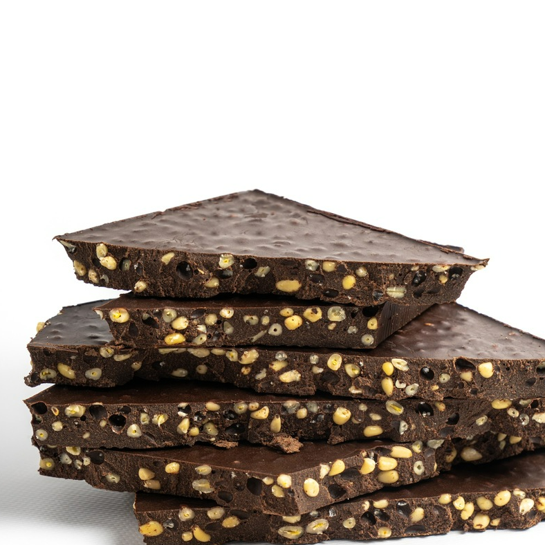 Сочетание мягкой бархатистости элитного какао Фино де Арома и свежих отборных орехов кешью создаёт неповторимый сбалансированный вкус без чрезмерной горечи.