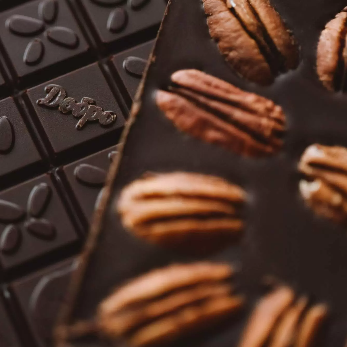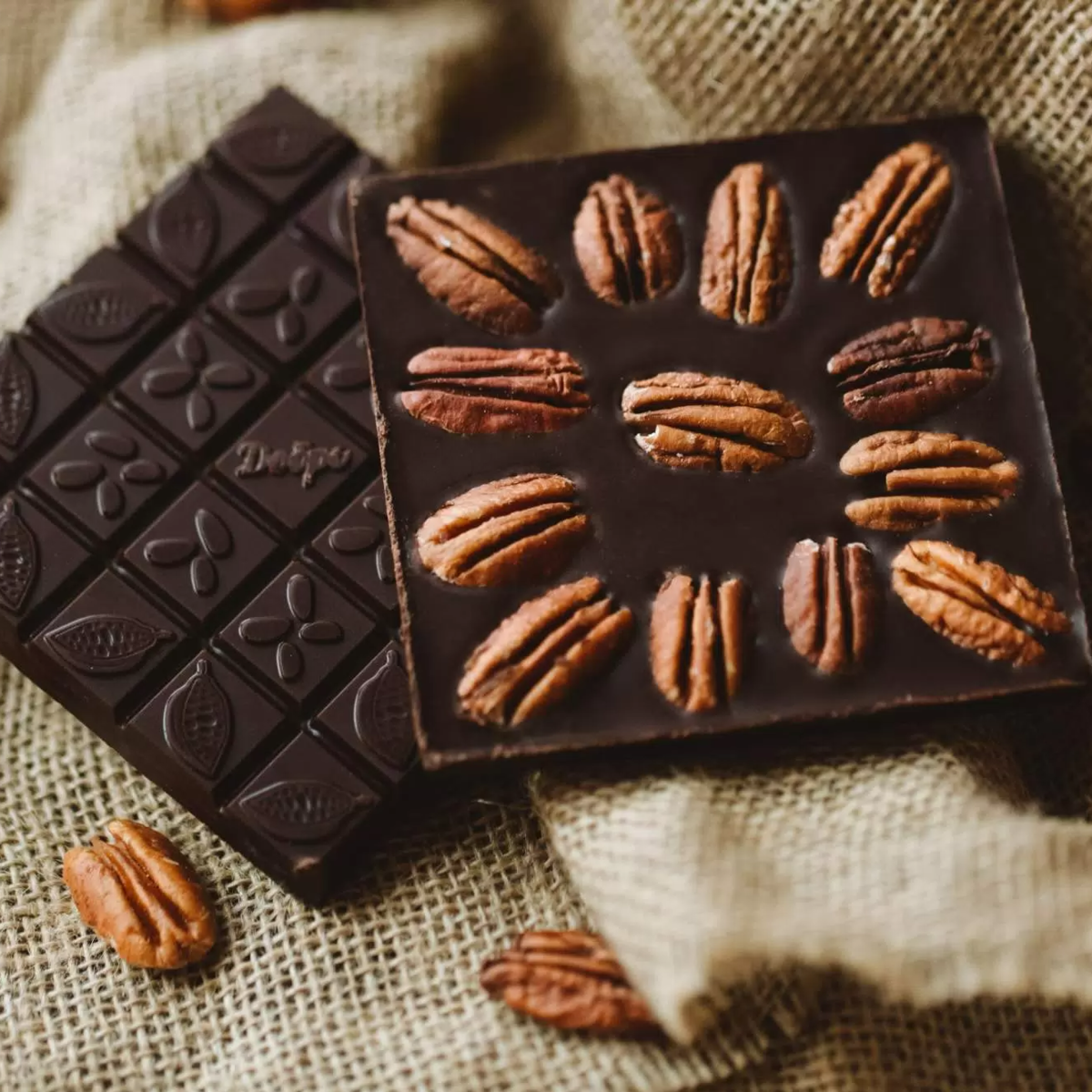 Шоколад с пеканом вы захотите есть снова и снова. Потому что забыть сочетание горького натурального шоколада и изысканного и слегка жирноватого пекана трудно. Особенно, если пекан в шоколаде отборный, с нежным ванильно-шоколадным вкусом.Без горчинки, которую можно встретить у грецких орехов.Немного нежнее и мягче обычных орехов.С приятной сладостью и маслянистостью.Мы используем свежий пекан из Крыма, а не из Северной Америки с доставкой в несколько месяцев.Если вы закроете глаза и попробуете качественный орех пекан, вы подумаете, что это такое вкусное печенье. Насколько он поражает своим вкусом.Именно такой пекан в шоколаде Добро.Представьте, как приятно, когда вы чувствуете маслянистость орешка в сочетании с плотным горьковатым вкусом шоколада. Крупного пекана, не измельченного в безвкусную крошку. Сохранившего свой истинный вкус, за который мы так любим этот изысканный орех.