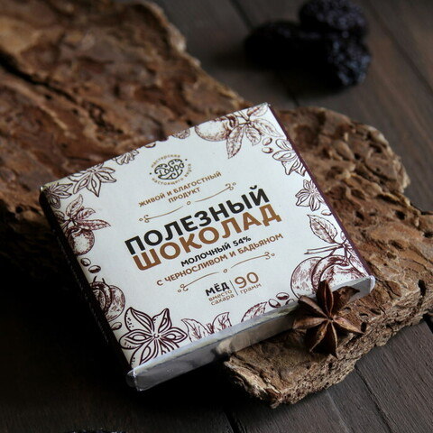 Состав:Какао тёртое натуральное, мёд пчелиный, какао масло нерафинированное, чернослив натуральный, молоко цельное сухое, бадьян молотый.