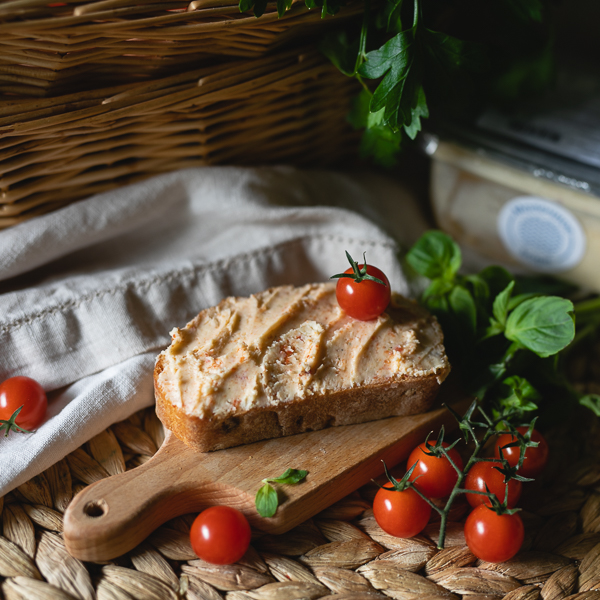 Вкусное сливочное масло с добавлением вяленого томата и базилика. Сделано из натуральных сливок, не содержит растительных жиров, искусственных консервантов и других посторонних добавок.