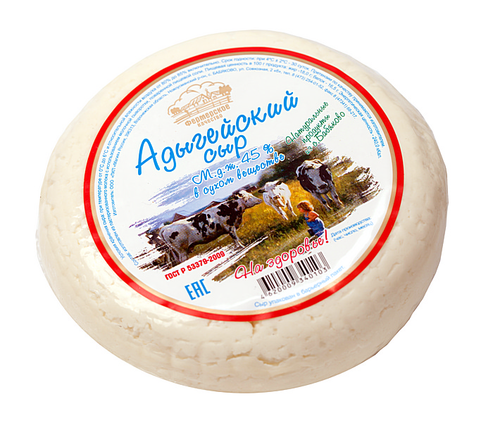 Адыгейский сыр имеет творожистую консистенцию и выраженный вкус простокваши. Когда-то его готовили исключительно из овечьего молока, но в современном производстве сорта «Адыгейский» используют также самое высококачественное коровье, которое заквашивают с применением сычуга или болгарской палочки.