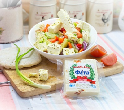 Сыр фета – это молодой рассольный сыр, этот сорт родом из Греции. Сыр фета чисто белого цвета, рассыпчатой структурой и нежным сливочным вкусом с тонкой кислинкой.Традиционно он производится из овечьего и козьего молока. Фета — самый главный компонент классического греческого салата, столь популярного теперь. Сыр Kesidis фета сделан из коровьего молока, это нежный и приятный на вкус молочный продукт, идеально подходящий для домашней кулинарии.