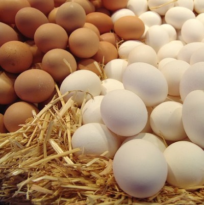 В 100 г куриного яйца содержится 76,15 г воды, 12,56 г белков, 9,51 г жиров, 2,5 г клетчатки, 1,06 г золы, 0,72 г углеводов; витамины: ретинол (А), тиамин (В1), рибофлавин (В2), ниацин (РР или В3), холин (В4), пантотеновая кислота (В5), пиридоксин (В6), фолиевая кислота (В9), цианокобаламин (В12), аскорбиновая кислота (С), альфа-токоферол (Е), кальциферол (D), филлохинон (К); макроэлементы: фосфор, натрий, магний, калий, кальций; микроэлементы: фтор, цинк, селен, медь, марганец, железо. Калорийность куриного яйца составляет примерно 143 ккал на 100 г продукта.