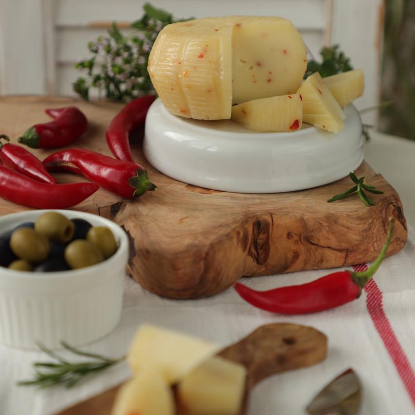Качотта Изготовлен из отборного цельного коровьего молока Состав: пастеризованное молоко, соль, молокосвертывающий ферментный препарат животного происхождения, закваска термофильных молочнокислых бактерий. Пищевая ценность 100г продукта: белок-23,2г; жир-28г; углеводы-2,6г. Массовая доля жира в сухом веществе 39%. Энергетическая ценность (калорийность), кДж(ккал) -1475 (355). Срок хранения – 1 месяц Упаковка – вакуумный пакет