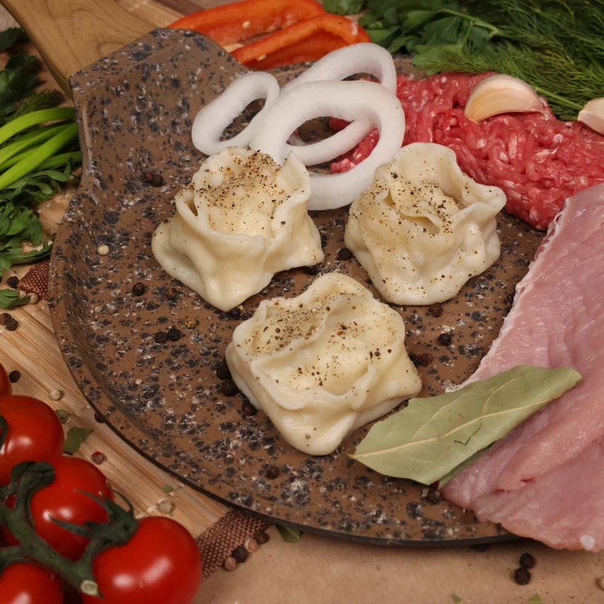 Манты свинина-говядина. Состав: мука пшеничная в/с, вода питьевая, яичный меланж, масло подсолнечное, соль поваренная пищевая, свинина, говядина, лук репчатый свежий, перец черный молотый.