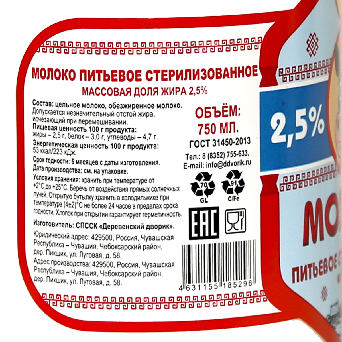 Молоко коровье питьевое стерилизованное ,фермерское мдж 2,5% премиум класса Стеклянная тара ,емкость 750 мл