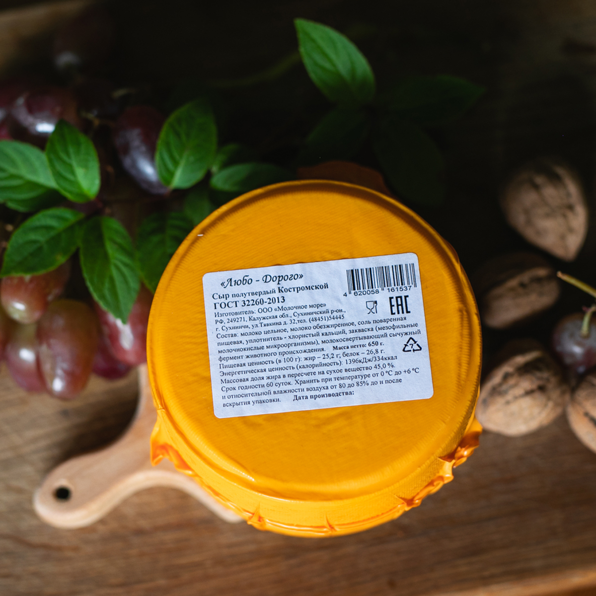 Костромской — один из самых известных сортов сыра в России, который изначально производился в Костромской области. Наш Костромской сделан из натурального молока с собственной фермы, имеет плотную текстуру и цвет от светлого до более насыщенного ярко-желтого (в зависимости от сезона). Вкус сыра нежный, с легкой кислинкой, остротой и молочными нотками.