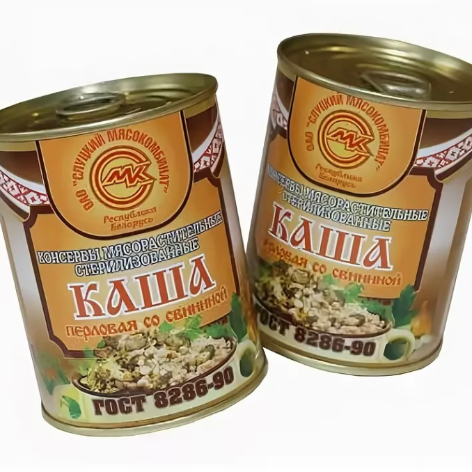 каша перловая со свининой ГОСТ 340г. 105 руб.