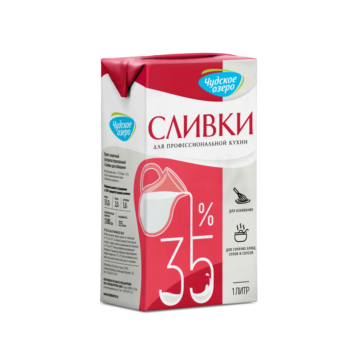 Сливки Чудское озеро 35% — натуральный продукт для профессиональной кухни, изготавливаются исключительно из отборного натурального молока, без ГМО и растительных ингредиентов.