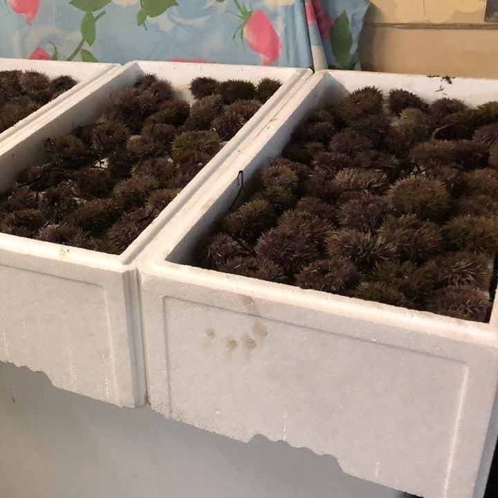 Живые морские ежи оптом. Размерный ряд 70 гр+