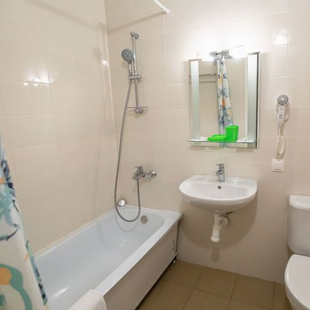 В номере: санузел, ванная, фен, телевизор, холодильник.